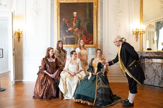 Május 3-án, anyák napján 11.00 és 15.00 órakor magyar nyelvű kosztümös tárlatvezetéssel várjuk a kicsiket és nagyokat egyaránt. Az izgalmas időutazás során ezúttal a hercegnő lesz a kalauz, aki saját szemszögéből mesél a női szerepekről és feladatokról a hercegi udvar mindennapjaiban.