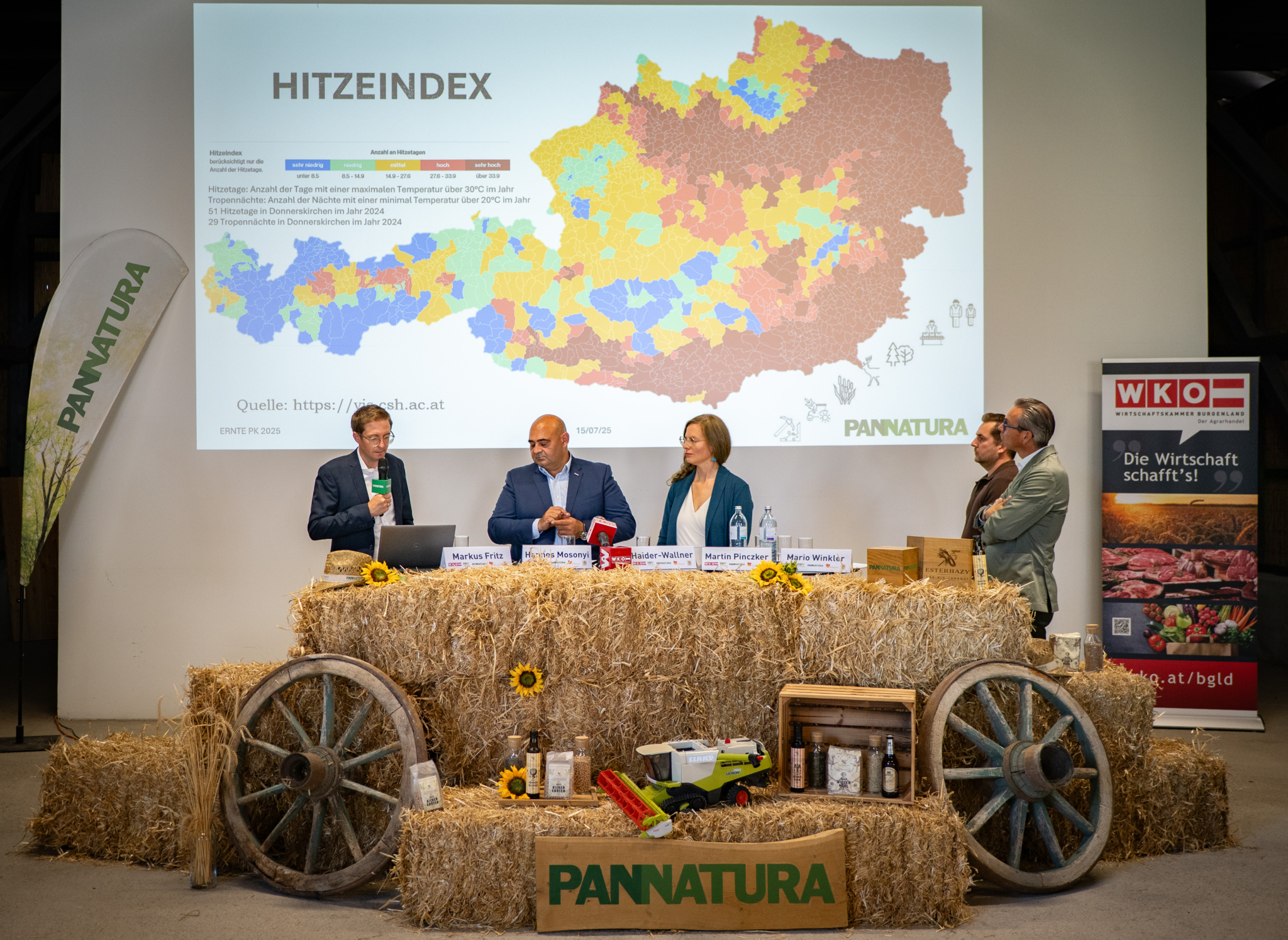 Mit der menschengemachten Klimaerhitzung stehe man „vor einer der größten Herausforderungen unserer Zeit“, warnte Mario Winkler, Prokurist und Kommunikationsleiter der Österreichischen Hagelversicherung. „Die vergangenen beiden Jahre waren global wie auch in Österreich die wärmsten seit Beginn der Wetteraufzeichnungen. Auch im Burgenland sind die Auswirkungen deutlich spürbar: Während es in den 1980er-Jahren in Eisenstadt durchschnittlich 12 Hitzetage pro Jahr gab – also Tage mit Temperaturen über 30 Grad Celsius –, liegt der Durchschnitt der vergangenen vier Jahre bereits bei 36. Die Zahl der Hitzetage hat sich somit verdreifacht – mit einem absoluten Höchstwert von 48 Hitzetagen im vergangenen Jahr.“
