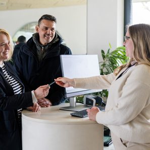 Mit der symbolischen Schlüsselübergabe durch Klaus Szep, Leitung Esterhazy Immobilien, an Monika Waitusch, General Managerin Neuer Strand Neusiedler See, wurde die Eröffnung nach sechs Monaten Bauzeit offiziell eingeläutet.