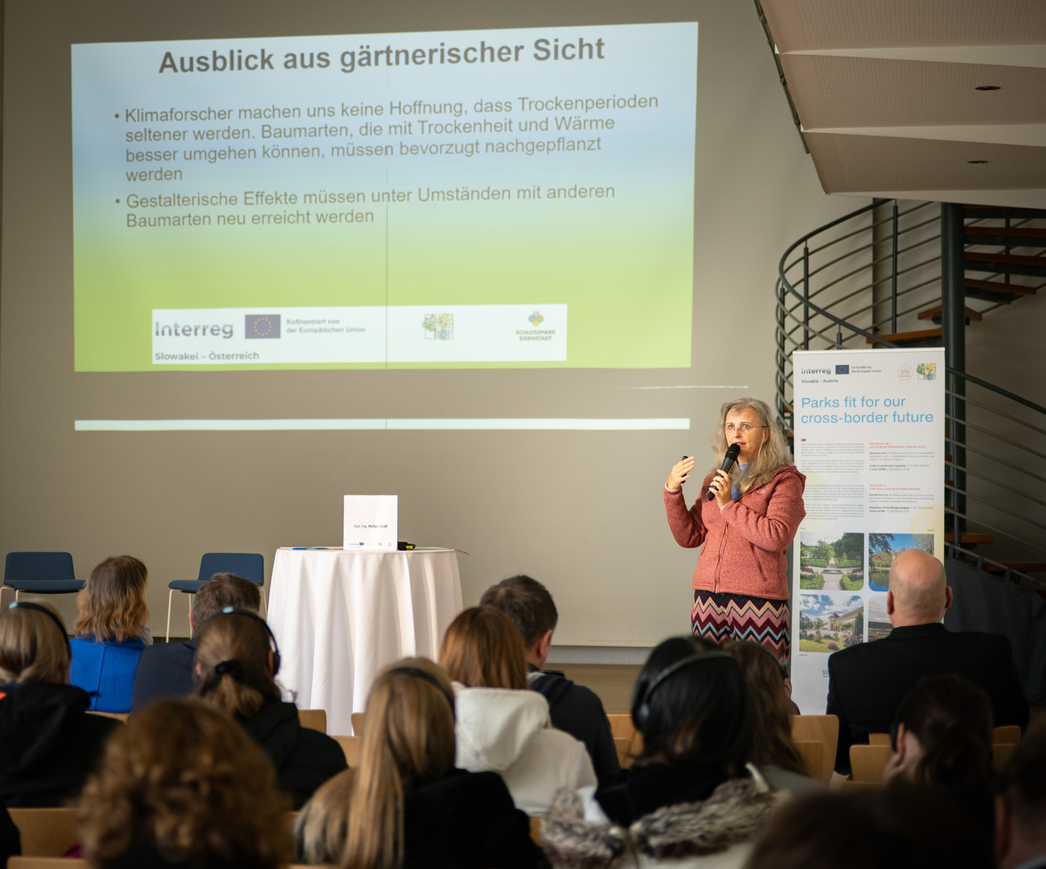 Am 16. Oktober 2025 fand auf Einladung der Projektpartner in der Orangerie im Schlosspark Eisenstadt ein Cross-border Open Garden Day statt, bei dem Experten aus unterschiedlichen Disziplinen vor rund 100 Gästen die aktuellen Herausforderungen in historischen Gärten diskutierten.