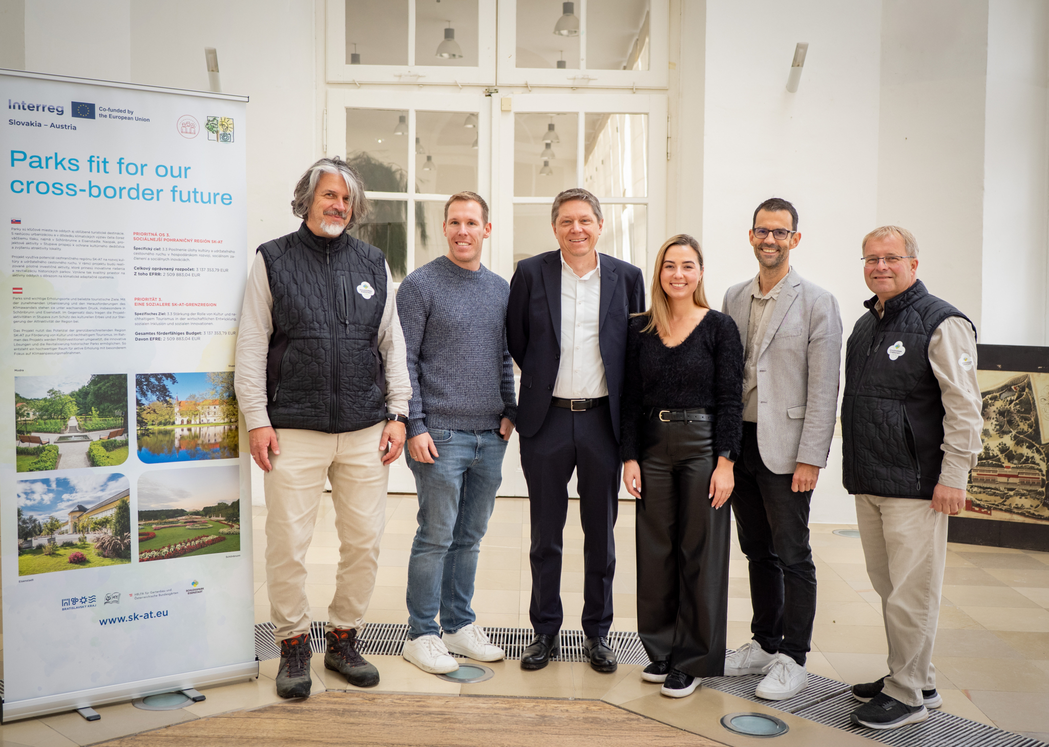 Historische Parkanlagen geraten angesichts von klimatischen Veränderungen, häufiger werdenden Extremwetterereignissen sowie dem Auftreten invasiver Arten zunehmend unter Druck. Im Rahmen des EU-Projekts „ParksFit4Future“ setzen sich Fachleute aus Österreich und der Slowakei mit Fragen auseinander, wie Gärten als historische Kulturgüter unter entsprechender Gehölzauswahl ihre Authentizität erhalten werden können. Projektpartner auf österreichischer Seite sind die Schlosspark Eisenstadt Erhaltungs GmbH und die Österreichischen Bundesgärten mit dem Schlosspark Schönbrunn, die slowakischen Anlagen in Stupava und Modra (Malokarpatské osvetové stredisko – Kleinkarpatisches Aufklärungszentrum) werden von Bratislavský samosprávny kraj vertreten. Das Projekt sieht gemeinsame Veranstaltungen sowie individuelle Maßnahmen in den einzelnen Gartenanlagen vor und erstreckt sich über den Zeitraum von April 2024 bis März 2027.