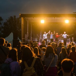Den Abschluss des Festivalabends gestaltet die Band Die Gewürztraminer, die österreichische Musiktradition mit Gypsy Swing, Balkan Rhythmen und diversen Pop- und Rock-Einflüssen verbindet. Mit einer Mischung aus Dialekt, Charme und musikalischer Vielseitigkeit schaffen sie eine dichte Live-Atmosphäre, die zwischen Bodenständigkeit und urbanem Sound oszilliert. Die Gewürztraminer stehen für musikalische Offenheit und einen unverwechselbaren Stil, der den Konzertabend stimmungsvoll ausklingen lässt.